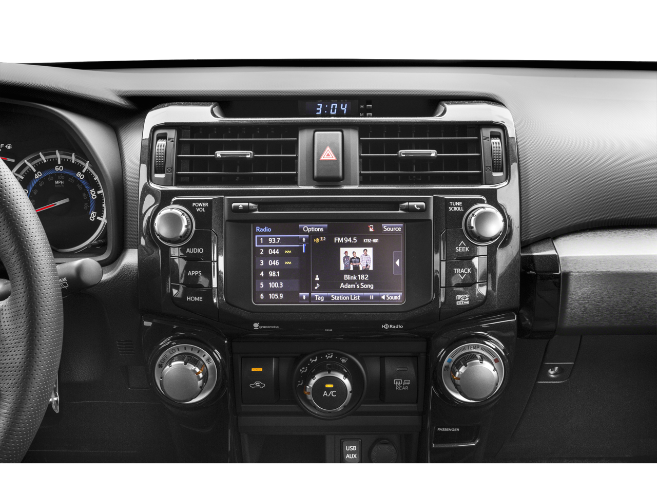 - Radio: Entune Audio Plus -inc: Entune Multimedia bundle (6.1-inch high resolution touch-screen display, AM/FM CD player, MP3/WMA playback capability, auxiliary audio jack, USB 2.0 port w/iPod connectivity and control, advanced voice recognition, hands-free phone capability, phone book access and music streaming via Bluetooth wireless technology), SiriusXM All Access Radio w/3-month complimentary trial, HD Radio, HD traffic and weather in major metro areas, and integrated backup camera display, Entune App Suite includes Bing, Facebook Places, iHeartRadio, MovieTickets.com, OpenTable, Pandora and Yelp; real-time info including traffic, weather, fuel prices, sports and stocks Access to Entune services is complimentary for three years. See toyota.com/entune for details.