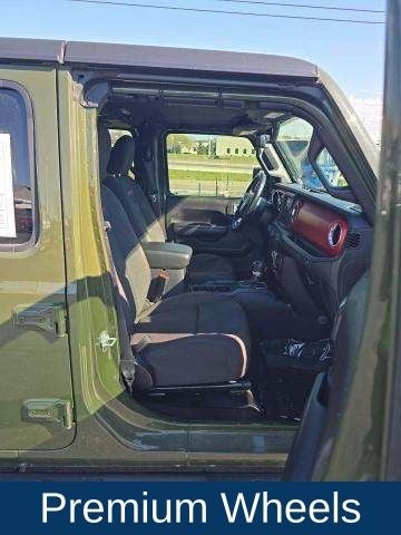 Elevate your off-road experience with the Rubicon's advanced 4WD system, featuring a 240-amp alternator, 700-amp maintenance-free battery, and a class II receiver hitch for all your towing needs. The LED lighting upgrades, including daytime running lamps, front fog lamps, and reflector headlamps, enhance both style and visibility.