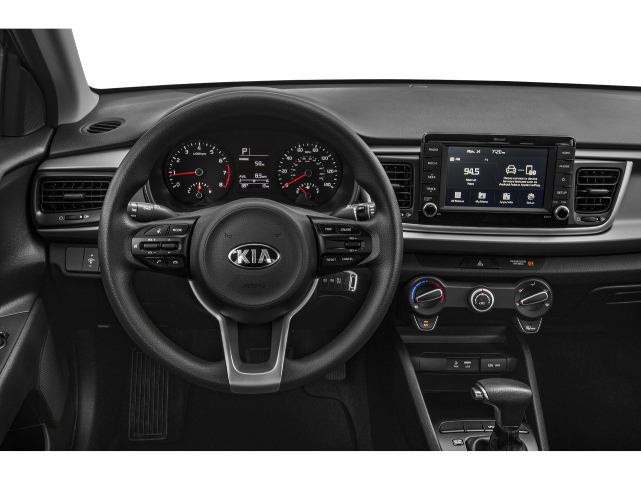 Back-Up Camera, iPod/MP3 Input, Bluetooth®, Apple CarPlay®, Smart Device Integration. Kia S with Phantom Gray exterior and Black interior features a 4 Cylinder Engine with 120 HP at 6300 RPM*.