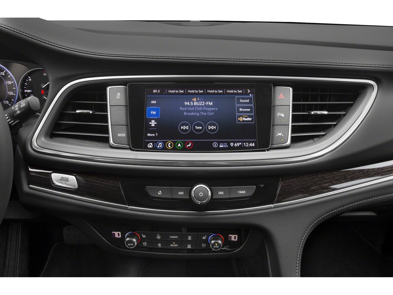 - Avenir Package Premium Package content plus: unique upper and lower grilles, wheels and front door badging; unique Chestnut/Ebony or Ebony interior color including seat stitching and piping; Avenir embroidered headrests and floor mats; bold script sill plates on all four doors; premium film decor accents; wood steering wheel; Buick Infotainment with Navigation; Wireless Charging; power dual moonroof with fixed rear skylight; 8" reconfigurable Driver Information Center; HD Surround Vision with full display Rear Camera Mirror and 6 exterior colors [White Frost Tricoat, Satin Steel Metallic, Dark Slate Metallic, Ebony Twilight Metallic and Rich Garnet Metallic]