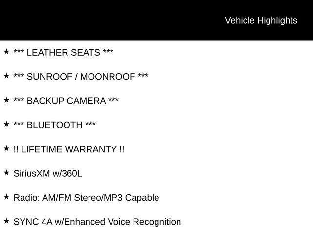 Indulge in the luxurious interior, featuring heated leather-trimmed seats, a heated steering wheel, and a panoramic Vista Roof that floods the cabin with natural light. Stay connected with the advanced SYNC 4A infotainment system, complete with enhanced voice recognition and SiriusXM with 360L. The premium audio system and rear parking sensors add to the overall driving experience.
