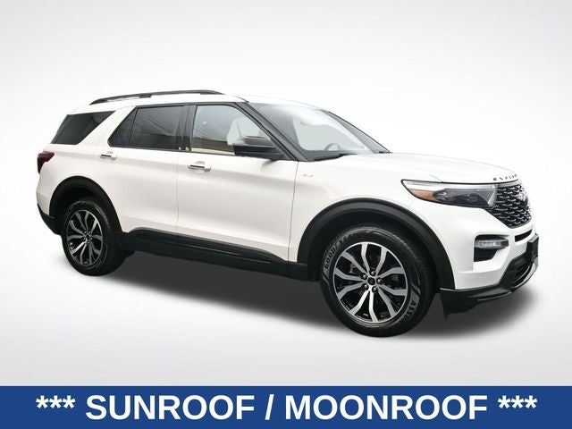 2022 Star White Metallic Tri-Coat Ford 4D Sport Utility Explorer ST-Line Moonroof 360-Degree Camera 4WD 10-Speed Automatic 2.3L EcoBoost I-4