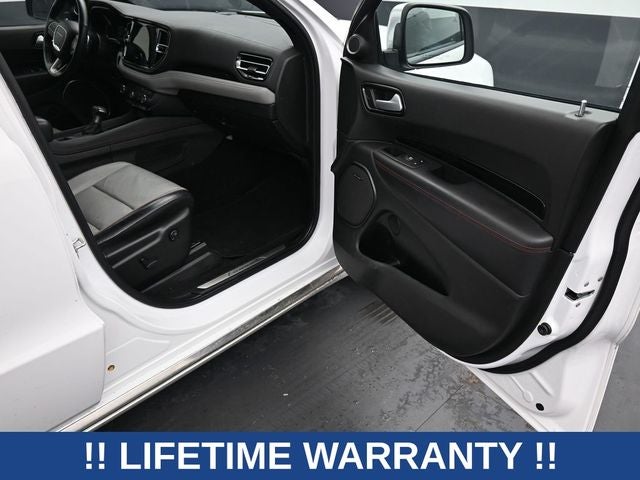 Step inside and you'll be greeted by a wealth of premium features, including a stunning sunroof, leather-trimmed seats, and a state-of-the-art navigation system. The Harman/Kardon audio system with 19 amplified speakers and a subwoofer will provide you with an immersive listening experience, while the Anodized Platinum Appearance Package and 20-inch satin carbon aluminum wheels give the Durango a bold, sophisticated look.