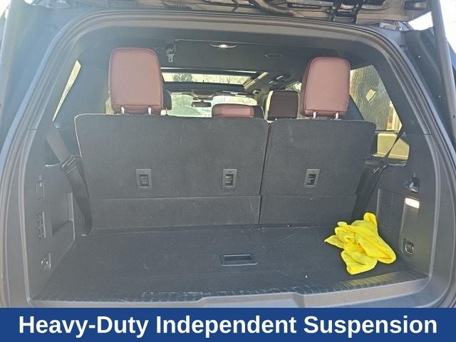 The Expedition's Equipment Group 302A High Package elevates the experience with a bold Ebony Black mesh grille, power-folding side mirrors, and a panoramic vista roof that floods the cabin with natural light. The Heavy-Duty Trailer Tow Package ensures you can haul your toys with confidence, thanks to the integrated trailer brake controller, Pro Trailer Backup Assist, and 3.73 axle ratio.