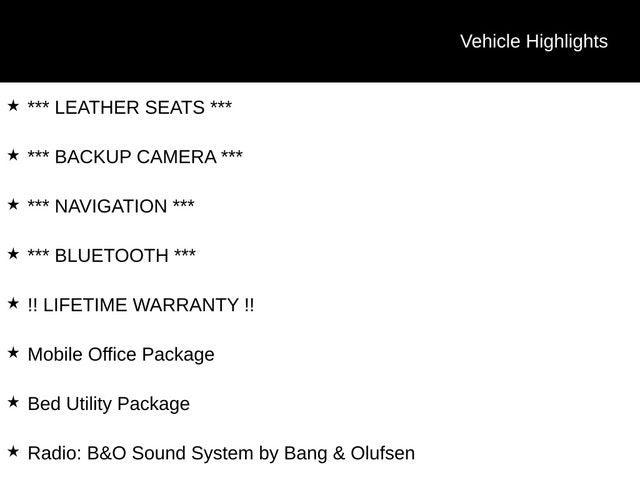 This F-150 Lariat is more than just a truck—it's a versatile companion that adapts to your every need. The Lariat Black Appearance Package adds a bold, sophisticated style, while the Mobile Office Package and Bed Utility Package transform this vehicle into a mobile command center. Enjoy the convenience of wireless charging, the clarity of the B&O sound system, and the comfort of heated and ventilated front seats.