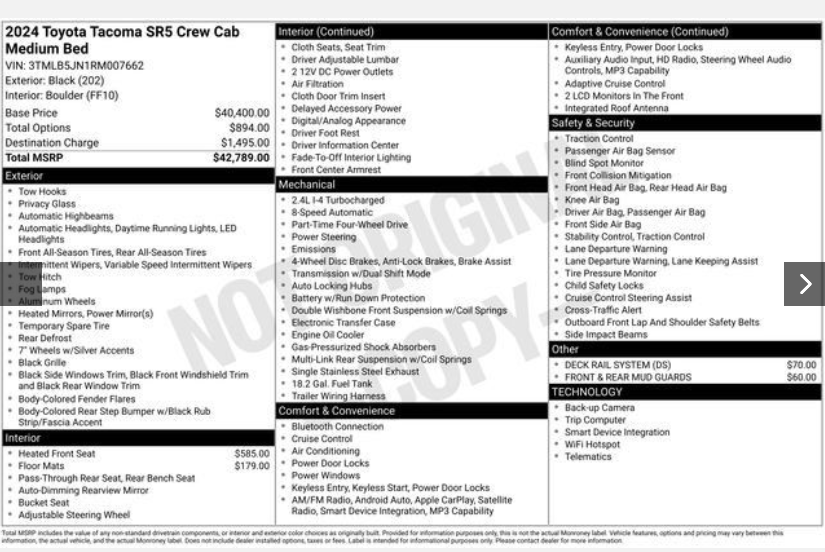 - Vehicle Name: Toyota Tacoma 4WD